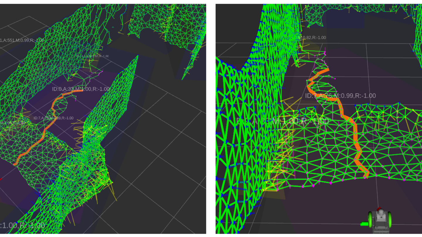 ・オープンソースのSLAM、自己位置推定ソフトウェアと連携し、トポロジカルマップベースの経路生成・経路追従やリアルタイムの障害物認識・回避が可能です。